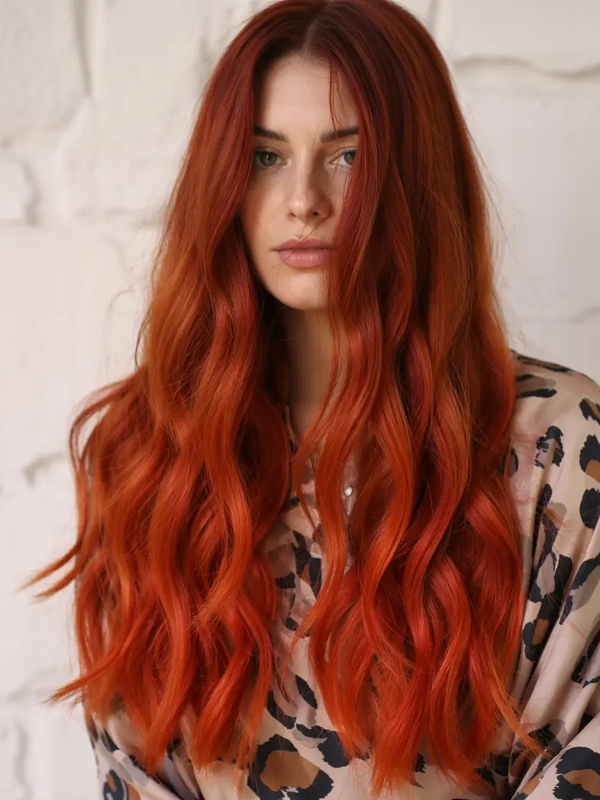 The gentle blonde sections of hair merge naturally with vibrant orange-red ombre that creates beachy waves with radiant sun-infused finishing. The transitional color reflected between the highlights will flatter light-colored hair by creating depth while providing an eye-catching bold appearance that remains sophisticated. The striking appearance of this haircut generates remarkable shine under sun exposure while remaining completely perfect for summer dressing. The coloring suits people with Indian brown tones because of its warm undertone elements.