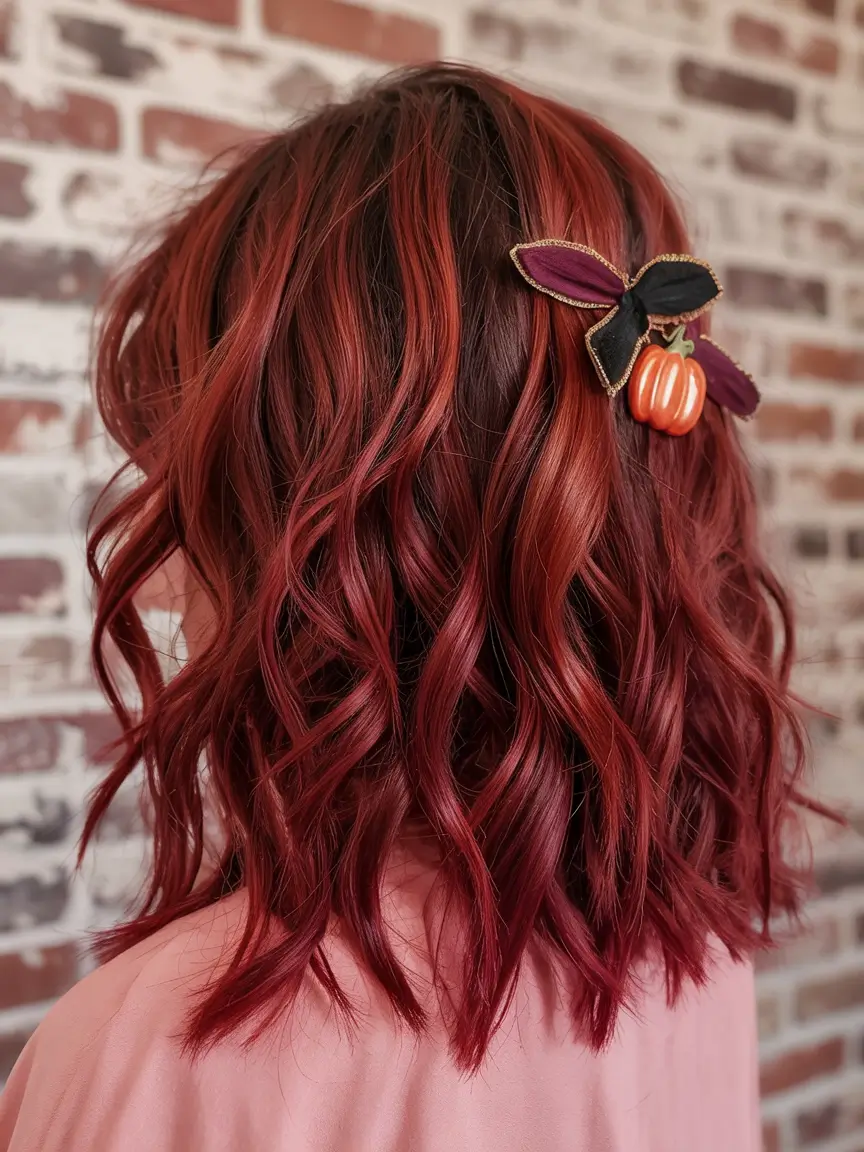 #24 Wavy Red Bob with Autumn Tones