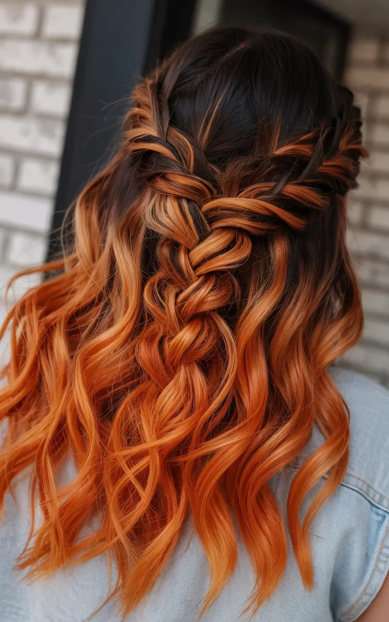 #22 Intricate Braids with Fiery Orange Balayage