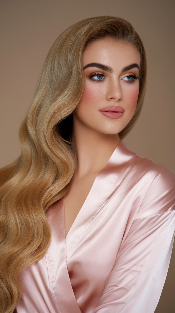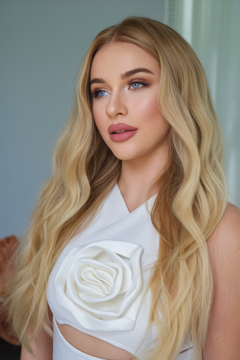 This body wave wig blends brown and honey blonde tones, creating a sun-kissed balayage effect. The layered cut adds natural dimension, while the soft waves provide movement and volume. This cute and radiant style is perfect for a spring wigs hairstyle 2025 update.