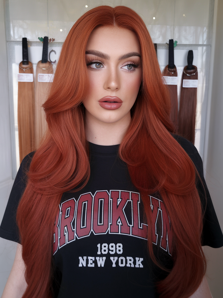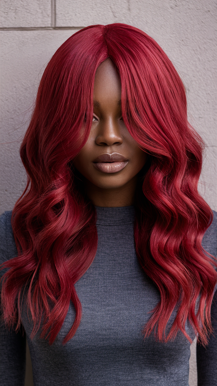 This deep wave wig in a vibrant red shade offers defined, structured curls that enhance volume and bounce. The lace front ensures a flawless hairline, blending naturally for a seamless finish. This look is a bold yet wearable option, perfect for a spring wigs hairstyle 2025 update.