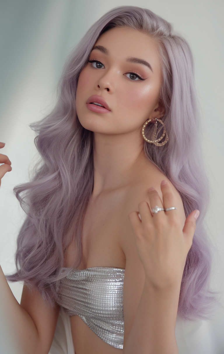 This water wave wig features a dreamy pastel lavender hue, perfect for a bold yet sophisticated style. The cascading waves add softness and bounce, making it a cute and playful choice for spring. The dimensional color ensures a fresh and unique look that stands out.