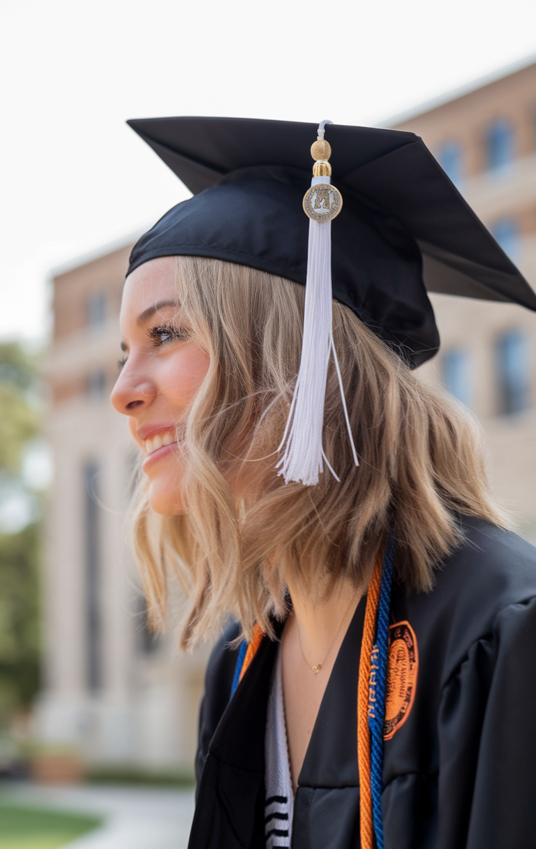 Graduation day is a special occasion that calls for a hairstyle that complements both your cap and overall look. Whether you prefer long hair, short hair, or braids, the right style will enhance your features and stay in place throughout the ceremony. Below are three pictorial examples of stylish graduation hairstyles with cap ideas 2025 that balance elegance and practicality.