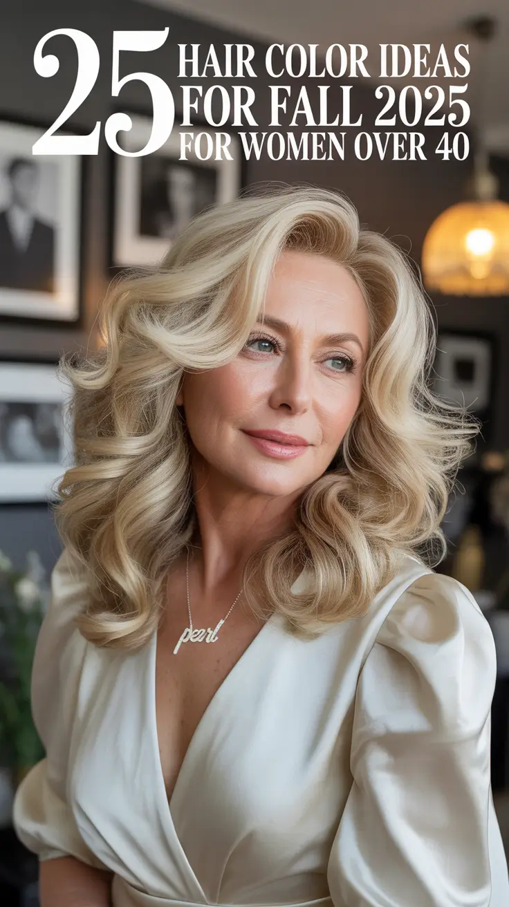 Now this is icy elegance. The frosted platinum color in this case is clean, crisp and modern with just a little retro volume in the styling to make it dramatic. I adore the way it goes with the statement jewelry it makes everything shine a bit more. The waves are soft but controlled, which is the perfect contrast to the brave color. It is a daring fall hair color on women beyond 40 years old but still want to play.