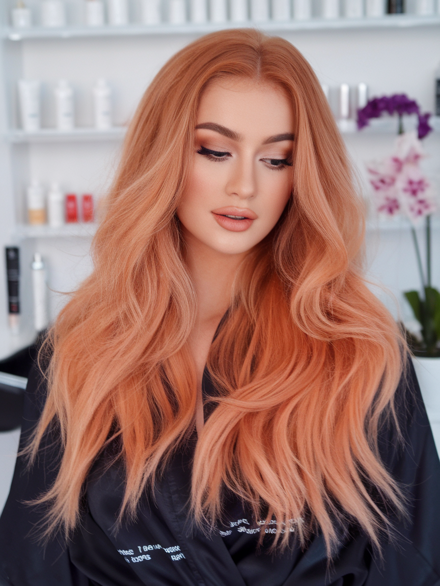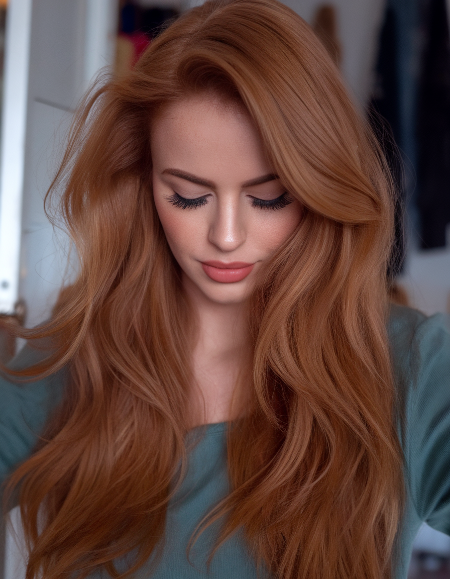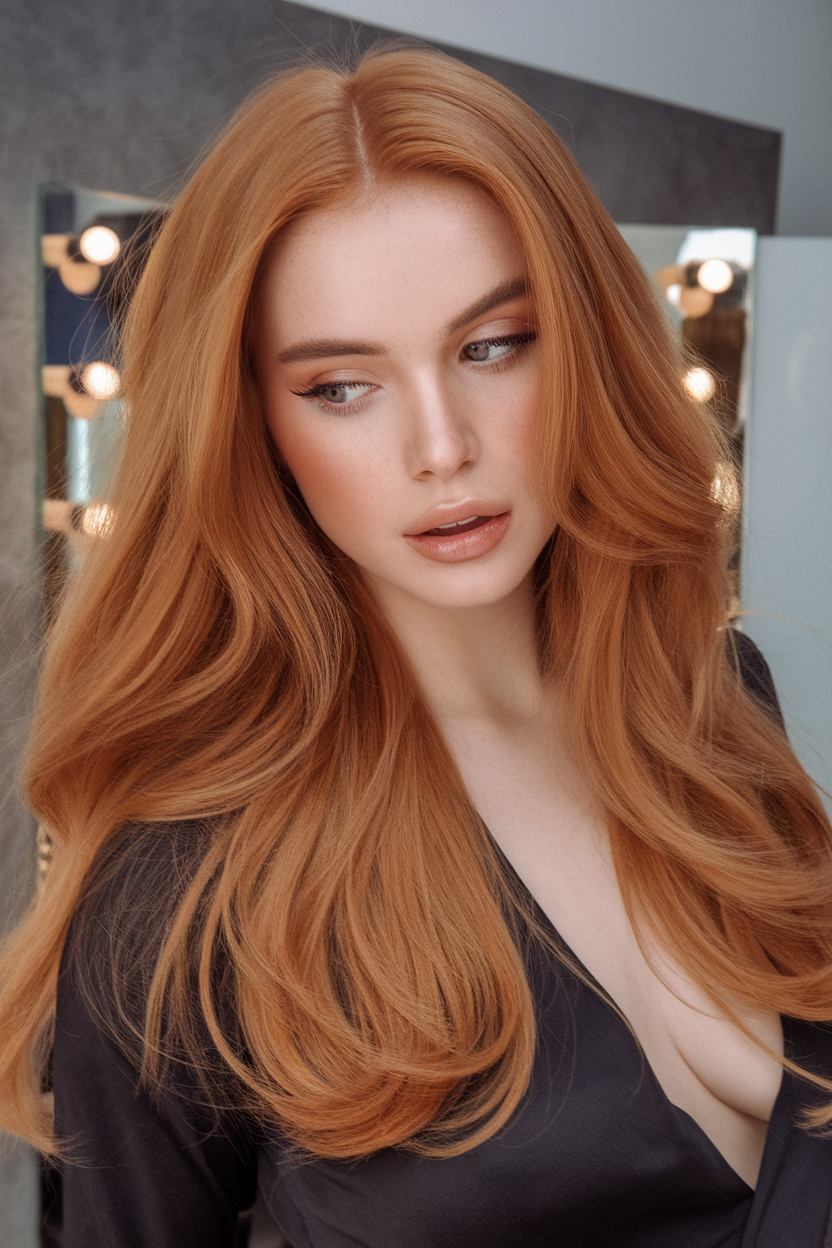 This ginger shade is a timeless choice that enhances warmth and radiance. The long, voluminous layers frame the face beautifully, adding movement and softness. As a part of hair trends 2025, this tone is ideal for those seeking a natural yet striking appearance. The rich copper-gold hue makes it a perfect option for maintaining a youthful, classic look.