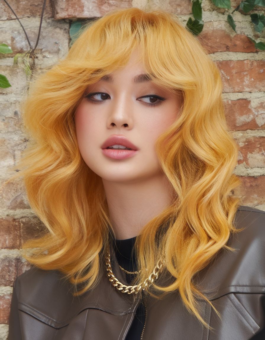 This golden blonde shade brings a nostalgic yet modern feel with its voluminous, layered waves. The subtle cowboy influence in the cut adds movement, making it a great choice for those looking to add body to their hair. As part of hair trends 2025, this warm hue enhances natural radiance and complements various skin tones. The soft curls frame the face beautifully, giving a youthful and vibrant look.