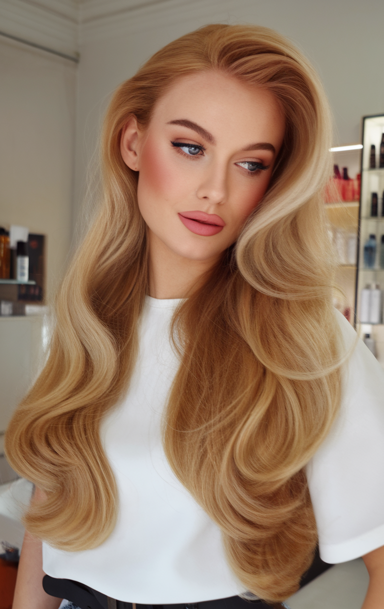 A golden blonde shade with sleek, structured waves embodies the glamour of classic Hollywood style. The smooth finish enhances shine, giving this look a luxurious appeal. As one of the best 2025 hair colors, this shade is perfect for those seeking a sophisticated, polished hairstyle. The warm undertones keep the hair looking radiant and full of depth.