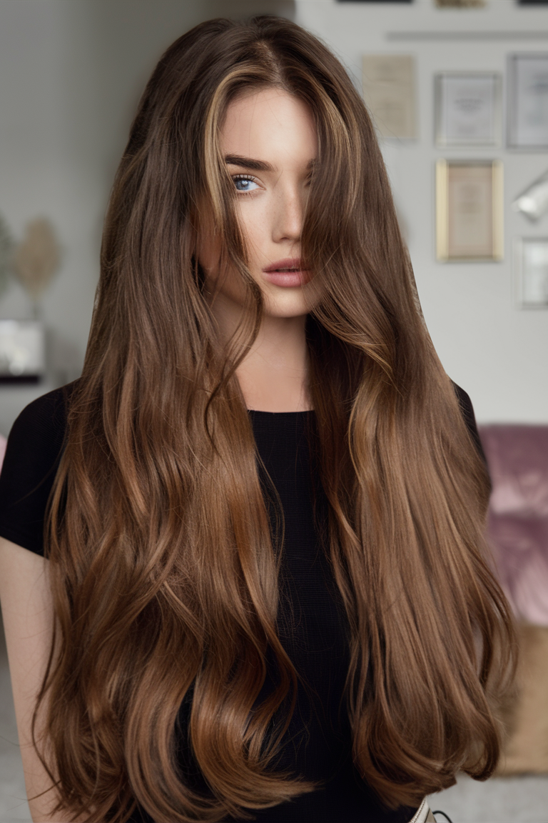 These long, lush waves are perfect for women with long hair who want to keep their length while adding texture and volume. The waves flow effortlessly, giving the hair a soft, romantic look. This style is a favorite for fall 2024, as it combines elegance with casual ease. The subtle highlights also add depth, making it an ideal choice for women looking to enhance their natural beauty while staying on-trend.