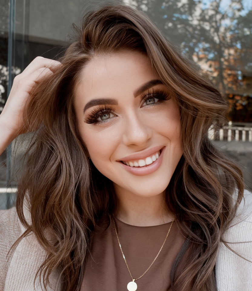 Long, flowing waves paired with curtain bangs are a staple for fall 2024. This look screams elegance, with the long layers providing softness and movement. The curtain bangs add a modern twist, complementing the face shape and balancing the volume of the waves. Ideal for long hair, this style is perfect for those wanting to keep their length while adding a bit of trendiness to their autumn look. It’s particularly great for women with round faces, as it provides both style and a flattering silhouette.