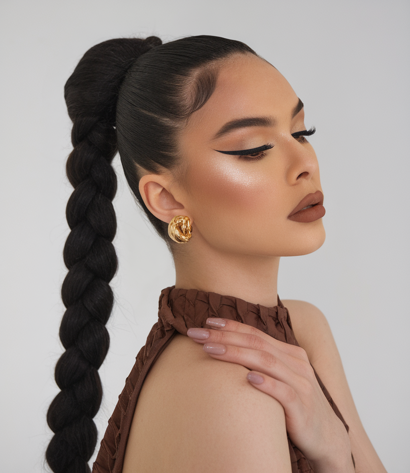 #16 Sleek Braided Ponytail with a Slickback Finish