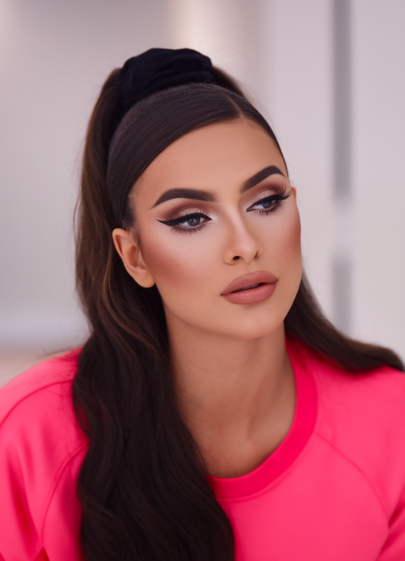 A sleek, high bun styled with precision brings out a sporty yet classy feel. The addition of a vibrant scarf tied around the hair adds a fancy and vintage element, giving it a 90s-inspired aesthetic. This look is perfect for those who love to mix elegant styles with a touch of personality. The neatly styled edges enhance the face, creating a clean and sophisticated appearance.