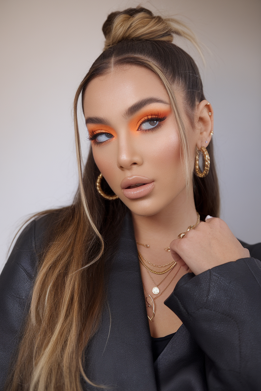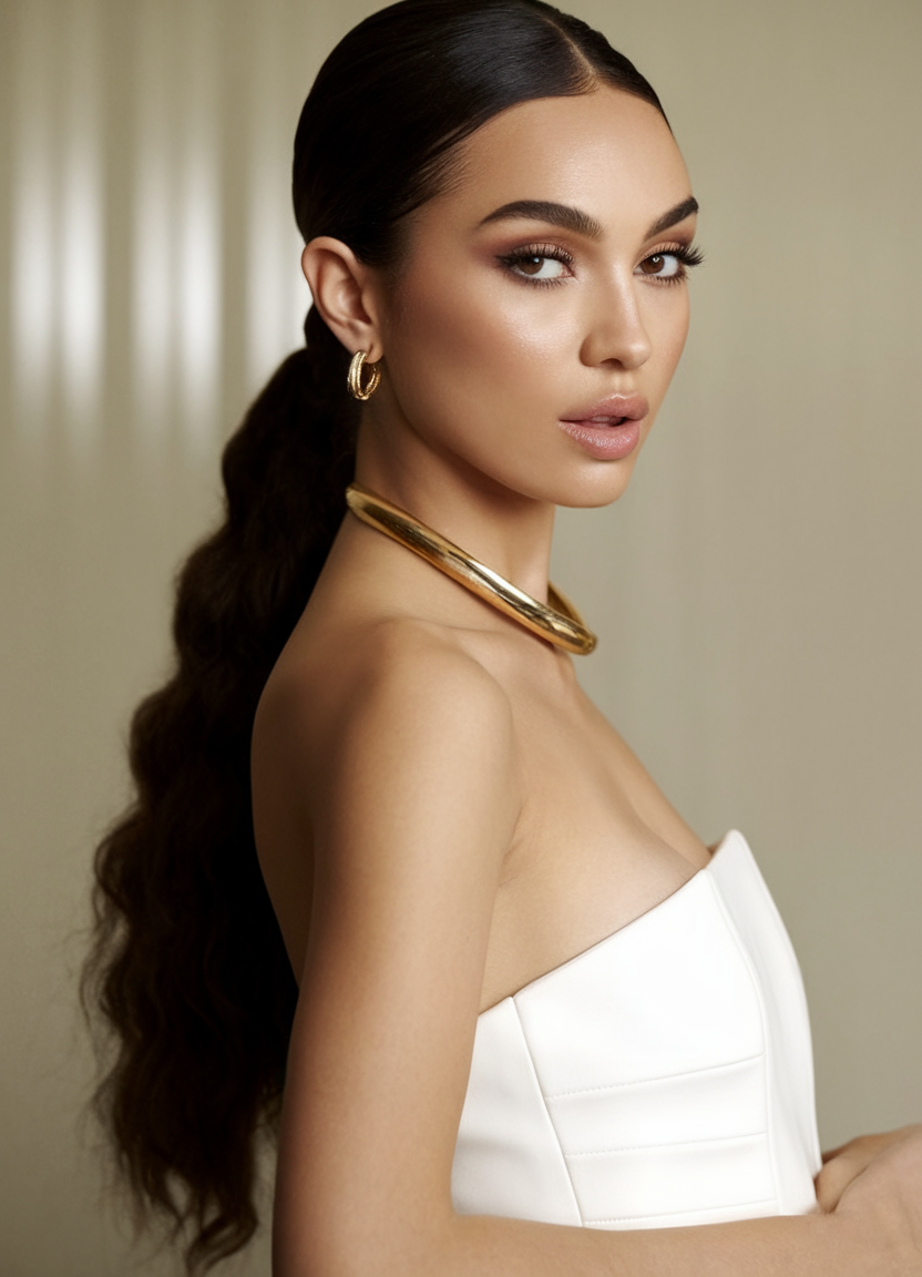 This high ponytail is sleek and smooth, offering a clean and professional style. The warm blonde tone and sharp structure make it a fun yet sophisticated option for medium or long hair. It’s a versatile look that transitions seamlessly from day to night.