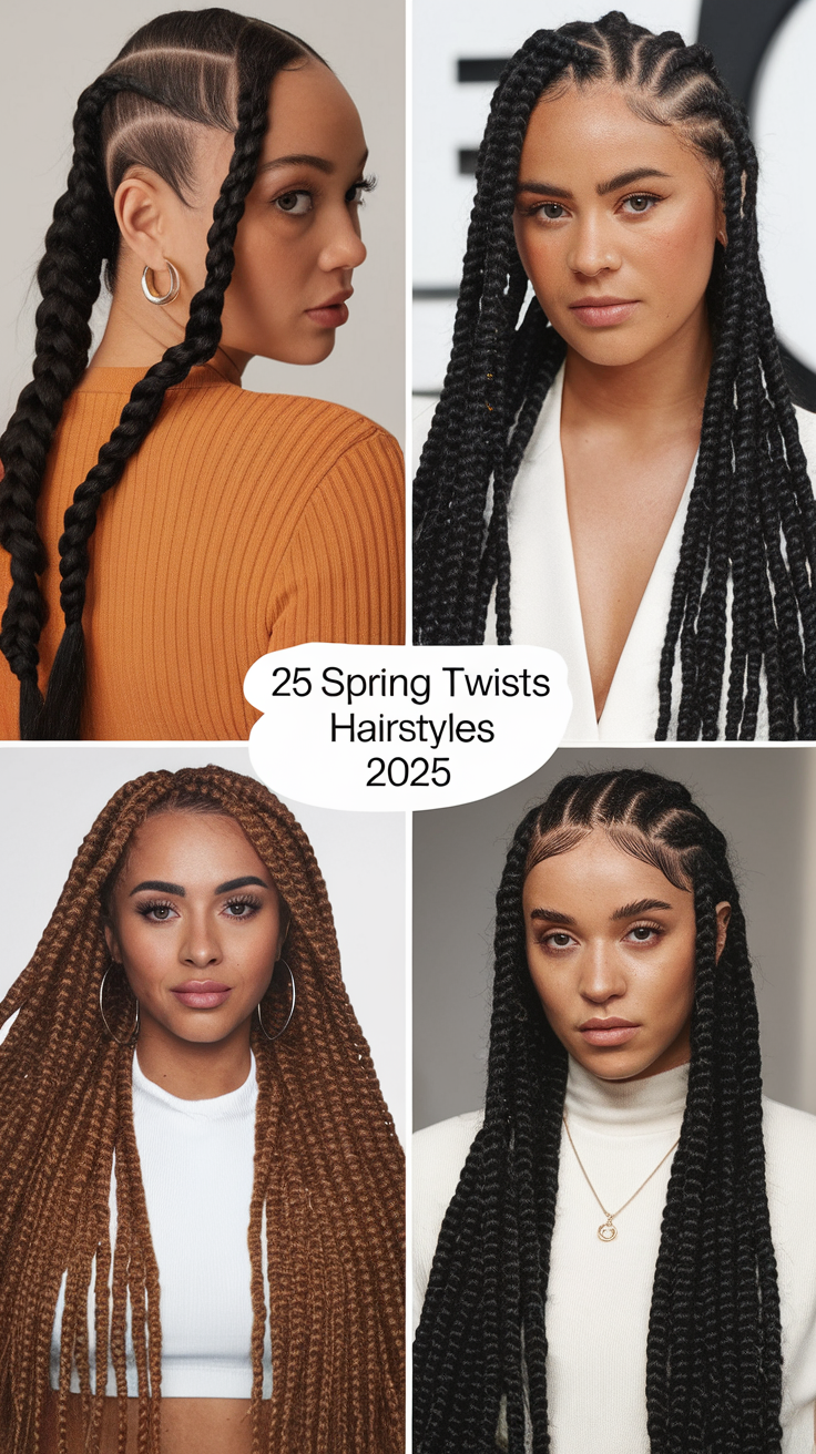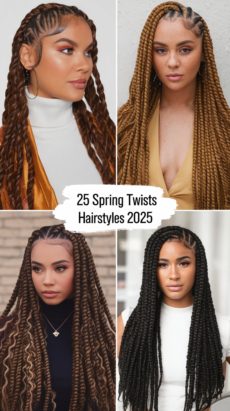 Spring twists continue to dominate the hairstyling world, offering versatility and beauty for all hair lengths and textures. From short to long, these styles bring out the best in natural hair, ensuring a look that’s both protective and stunning. Below are three popular variations of spring twists hairstyles 2025, perfect for any occasion.