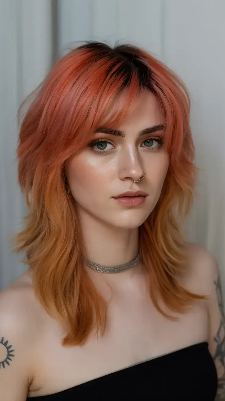 Okay, this one? This is where things shift. A little messier, a little cooler, a little more “I didn’t try but it still works.” The layered shag cut paired with that rich Ginger-leaning copper tone feels undeniably Edgy. It’s giving downtown energy, late coffee runs, and that perfect slightly grown-out fringe.