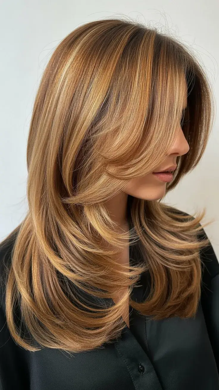 I’d keep this tone fresh with a color-safe gloss and minimal heat styling – those soft layers really do the work on their own. It’s one of those shades that looks even better slightly undone.