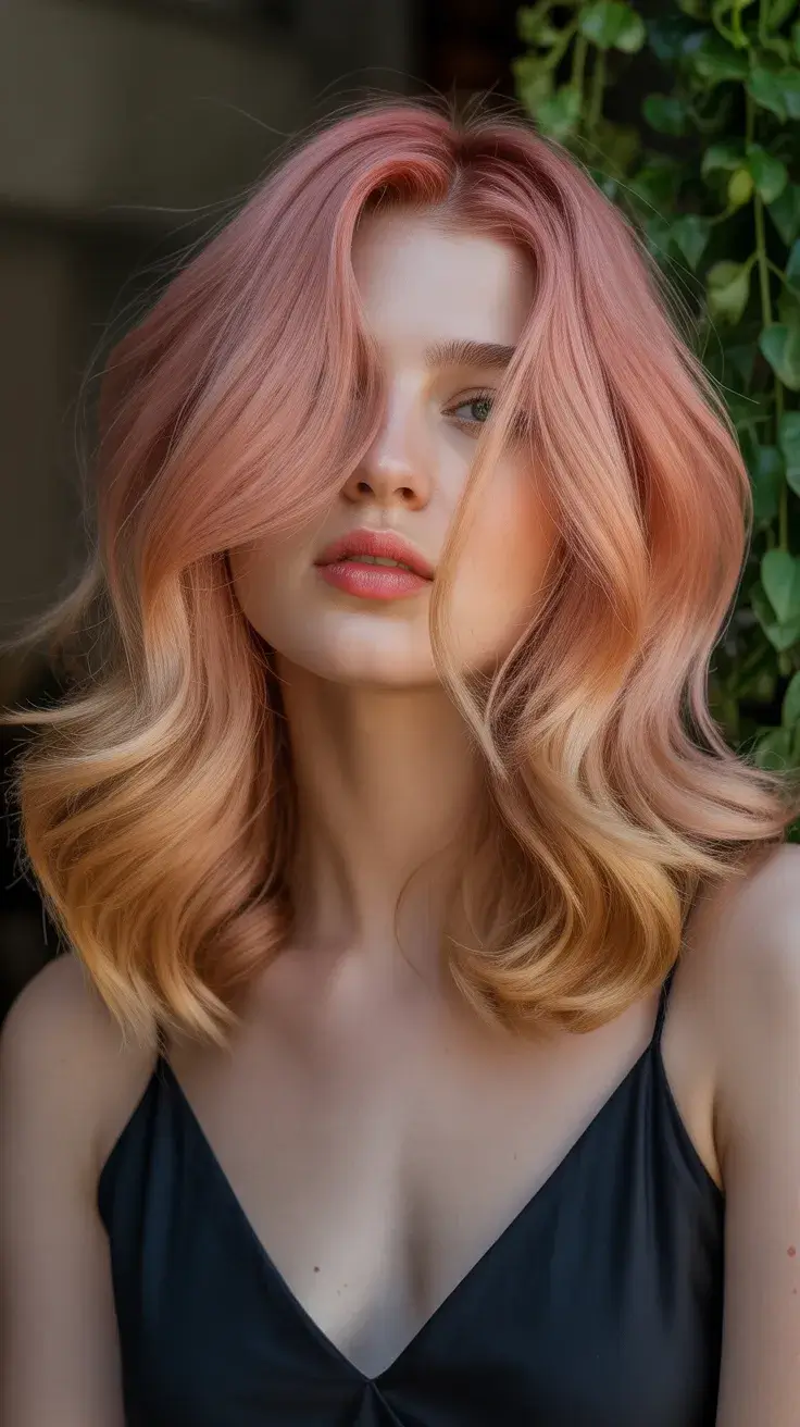 This is where things start to feel warm again – soft peach melting into golden blonde, like a sunset that decided to stay a little longer. It’s feminine, glowy, and honestly very flattering across different skin tones, including Brown skin, where the warmth really comes alive.