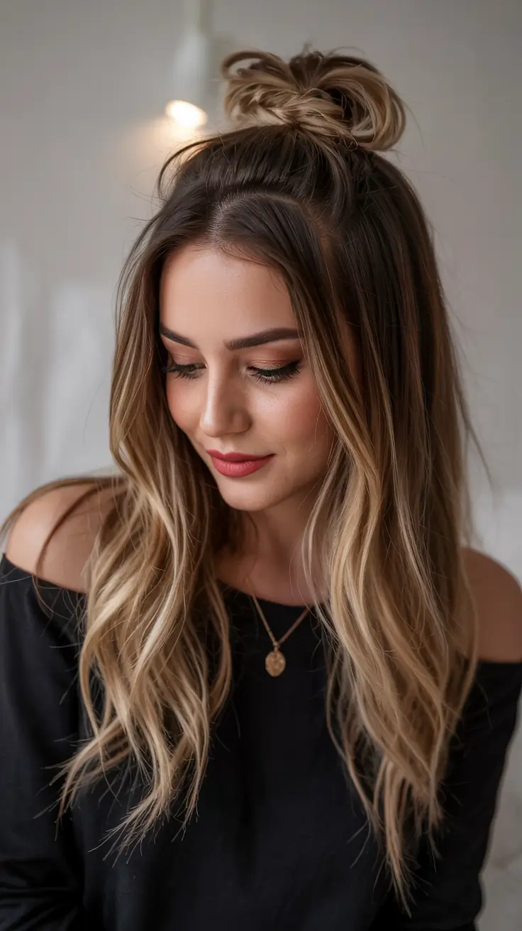 #6 Blonde Ombre with a Casual Top Knot