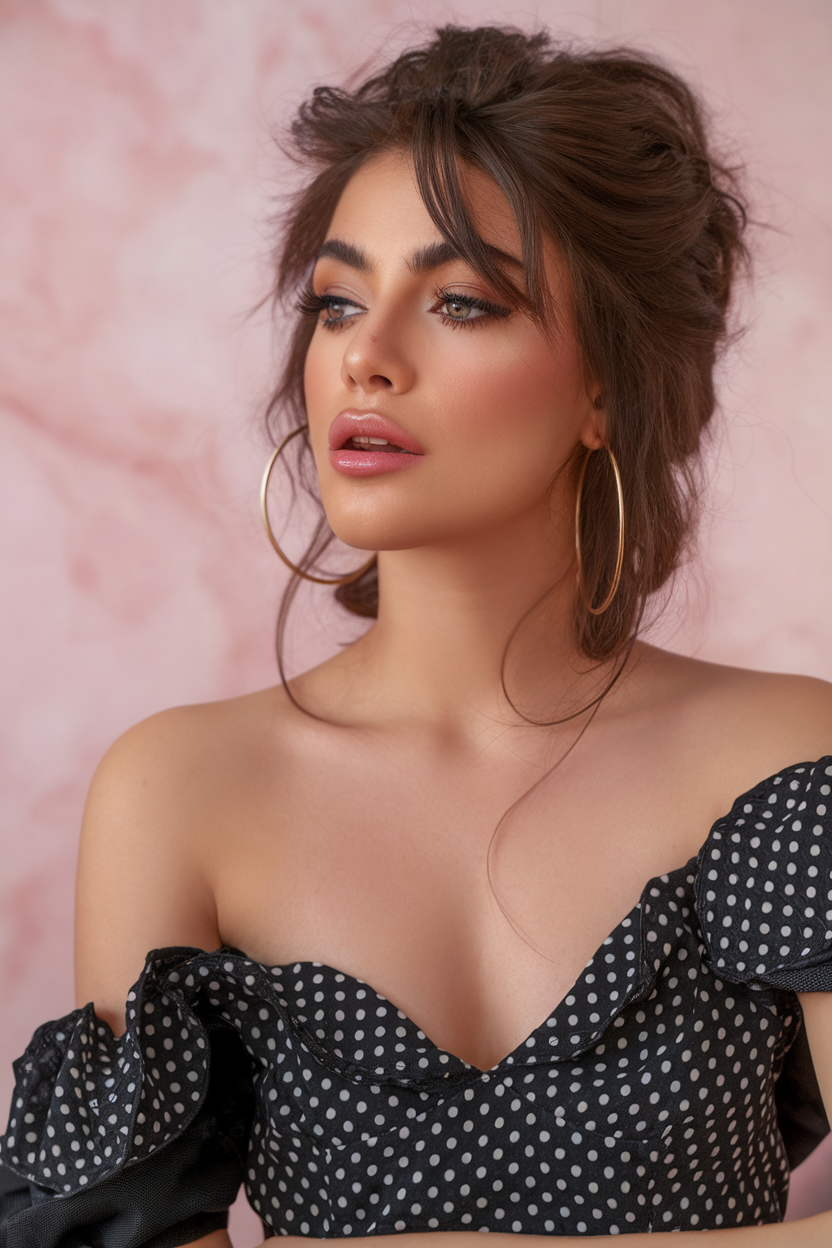This bow-adorned updo gives a playful yet sophisticated vibe. The short hair at the front is styled with soft, feathered bangs, while the long locks are elegantly twisted into a bun. Reminiscent of the 40s, this look is perfect for festive occasions like Lohri or Onam, offering a classy yet youthful feel.