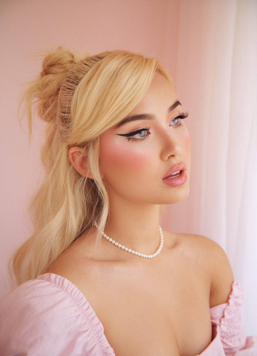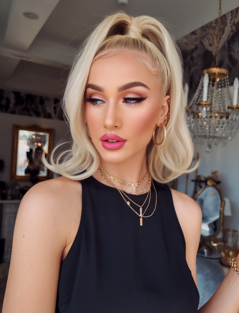 #13 Romantic Blonde Half-Up Bun with Soft Waves