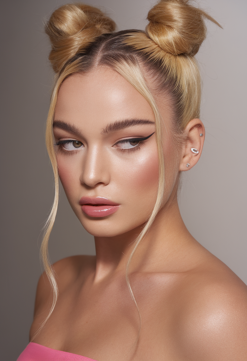 #10 Sleek Blonde Space Buns with Face-Framing Strands