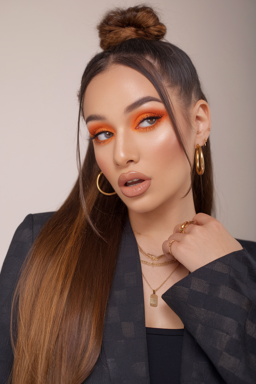 This classy long hairstyle features a perfectly smooth half-up bun, combined with sleek long hair cascading down the back. The polished, deep brown shade enhances the attractive and elegant look, making it a great choice for business or evening events. A go-to 2025 style, this refined yet effortless look suits various face shapes.