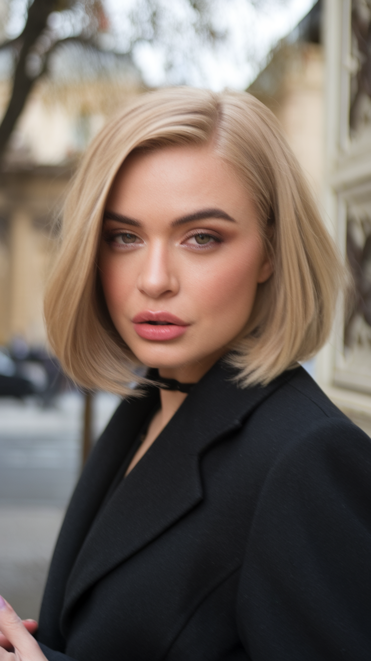 #7 Sleek Blunt Bob with Soft Blonde Tones