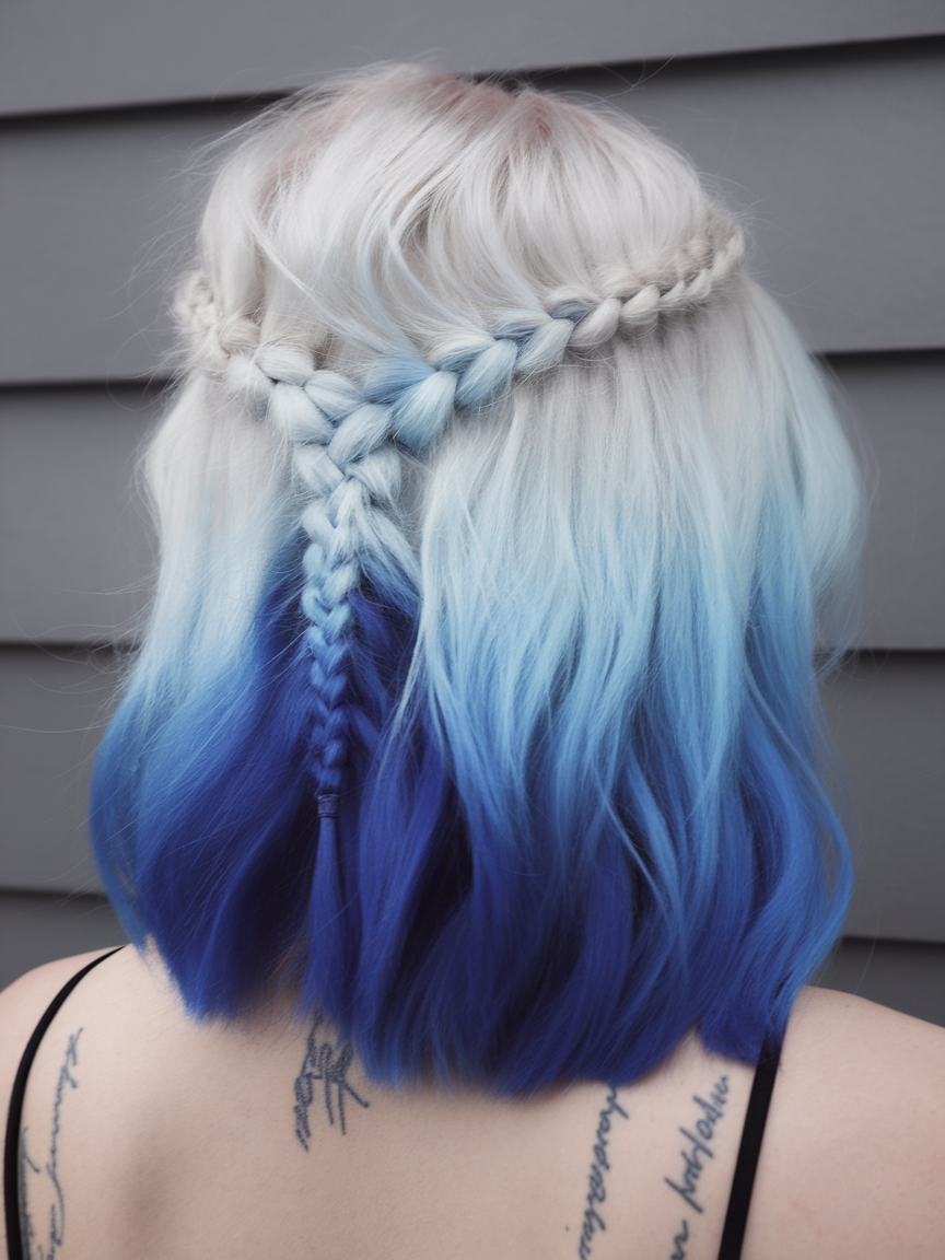 #10 Icy Blue Ombre Bob with Braided Crown