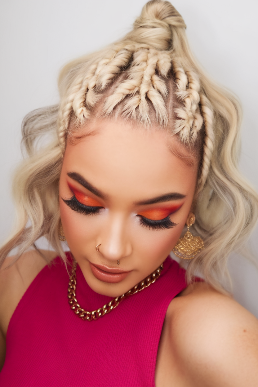 #9 Blonde Bob with Twisted Braids and Half-Up Knot