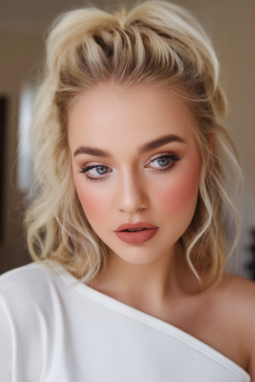 #23 Wavy Blonde Bob with Voluminous Half-Up Style