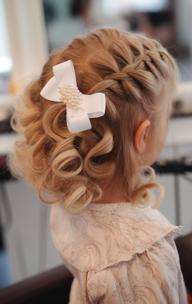 This soft blonde bob features defined curls and a delicate side braid for an elegant touch. The pearl-adorned bow clip enhances the hairstyle, giving it a polished and sophisticated feel. The combination of waves and braids makes this a charming choice for spring bob hairstyles 2025.