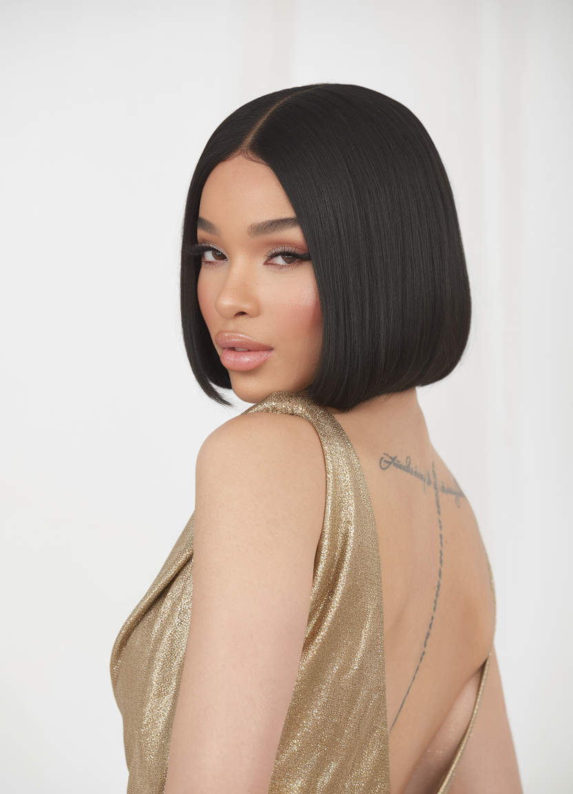 This classic low cut bob features a deep natural black tone and sharp, sleek lines for a polished finish. The center part adds symmetry, while the blunt ends highlight precision. This hairstyle is a timeless choice for Tone women seeking a minimalist yet chic look for spring. Perfect for anyone wanting elegance with minimal maintenance.