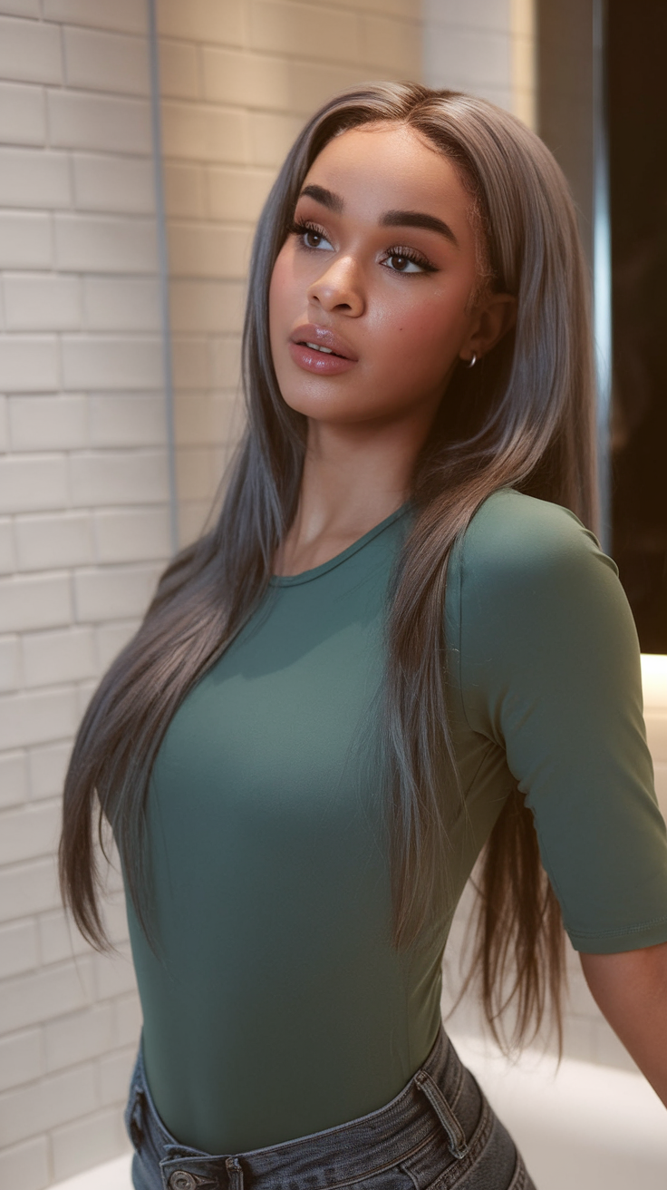 This look features silky, straight chocolate brown hair that exudes sophistication and natural charm. The tone flatters a variety of skin tones, including Tone women and Tone Latinas, giving a warm, sun-kissed glow. The cut is sleek and layered, creating a polished yet approachable vibe. Perfect for women seeking a natural spring hair update that’s both good and versatile.