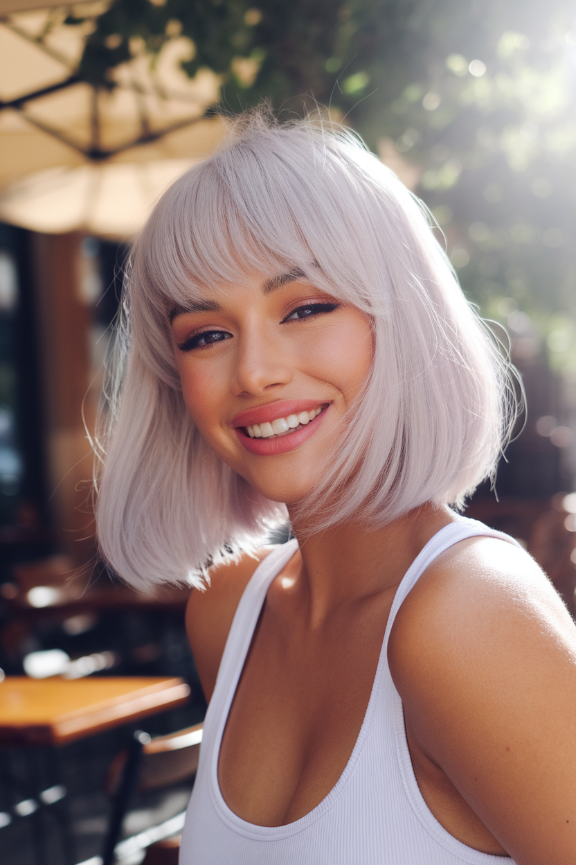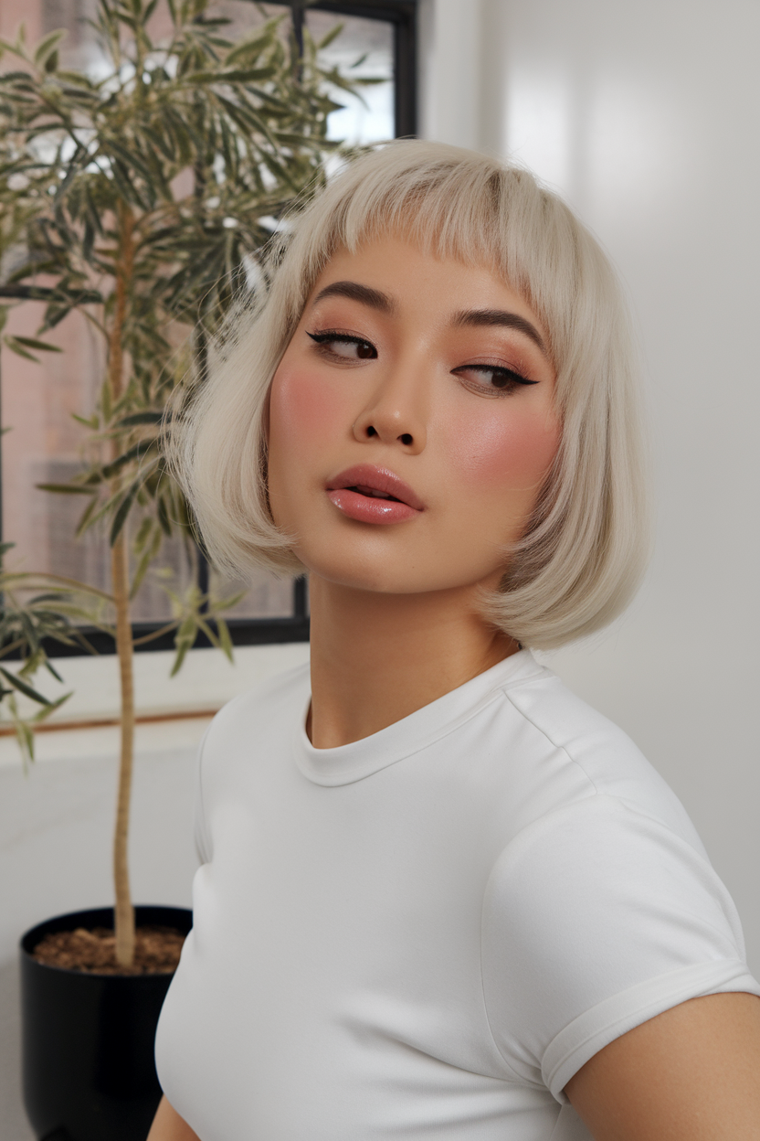 #21 Platinum Blonde Bob with Soft Bangs