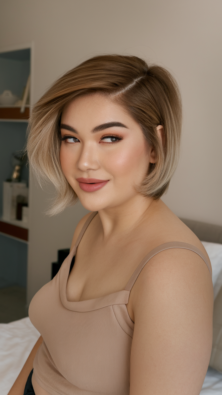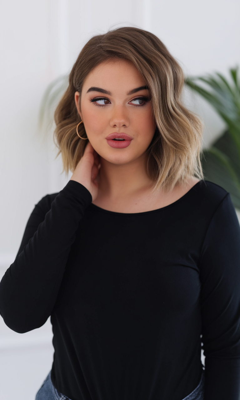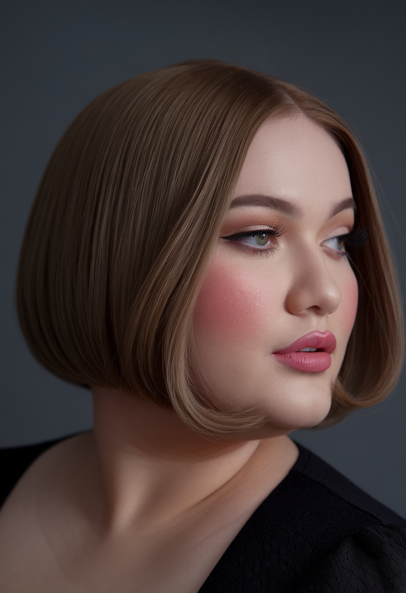 This layered bob features a short length that frames the face, creating a soft and balanced look. The natural volume at the crown adds dimension, making it perfect for size medium women with fuller features. The simple, classic style works beautifully as a spring haircut for chubby faces in 2025.
