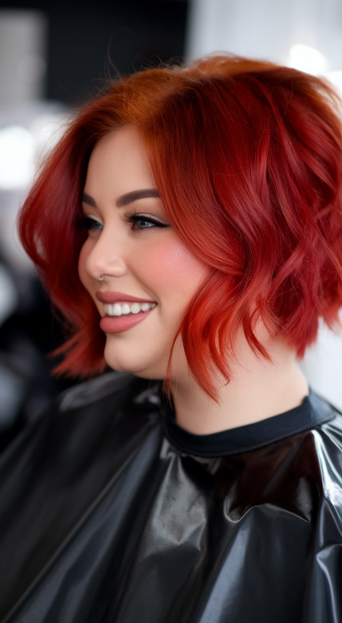 This short Korean-inspired bob stands out with its vibrant red color and soft waves. The chin-length cut adds definition to the jawline while creating a playful, youthful style. It’s a perfect choice for women seeking a bold spring look with a touch of flair.
