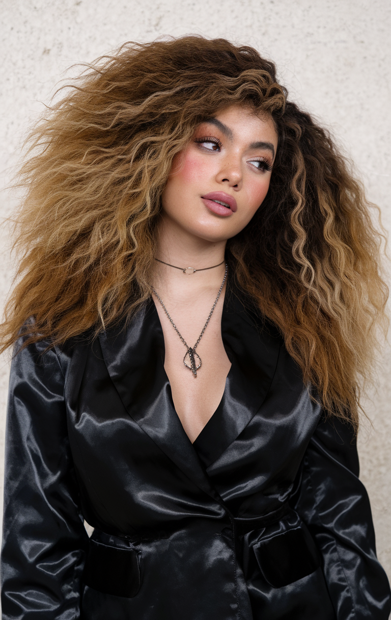 This voluminous style features bold curly layers that add texture and dimension to the hair. The ombre effect highlights the depth of the curls, making it both edgy and trending. A perfect option for those wanting a best and confident spring hairstyle.