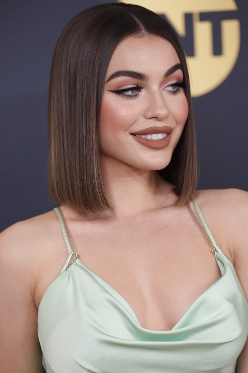 This straight lob is sleek and polished, featuring a precise center part for symmetry. The dark brunette shade adds depth and shine, making it a sophisticated choice for spring. This cut works beautifully for women who love minimalistic and easy-to-maintain styles.