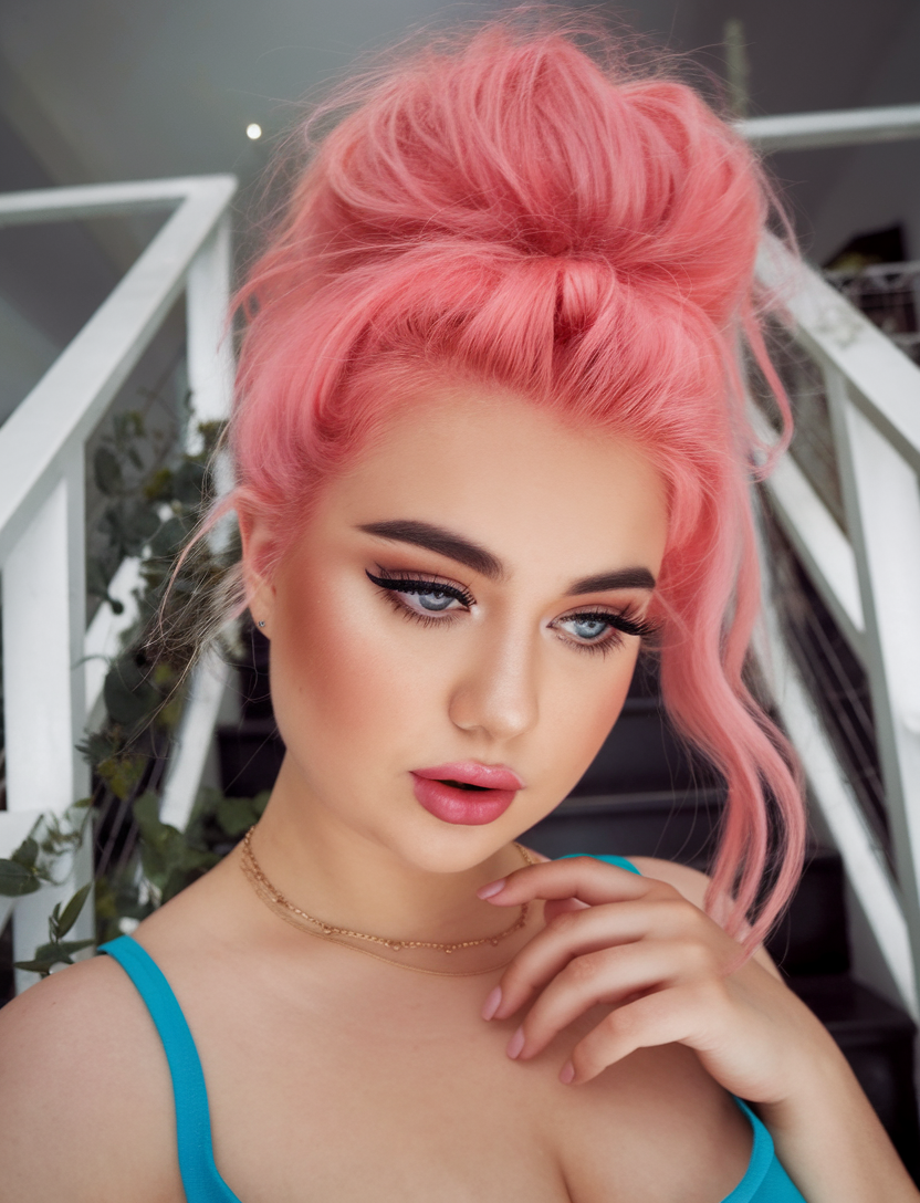 #23 Voluminous Pink Updo for Bold Statement