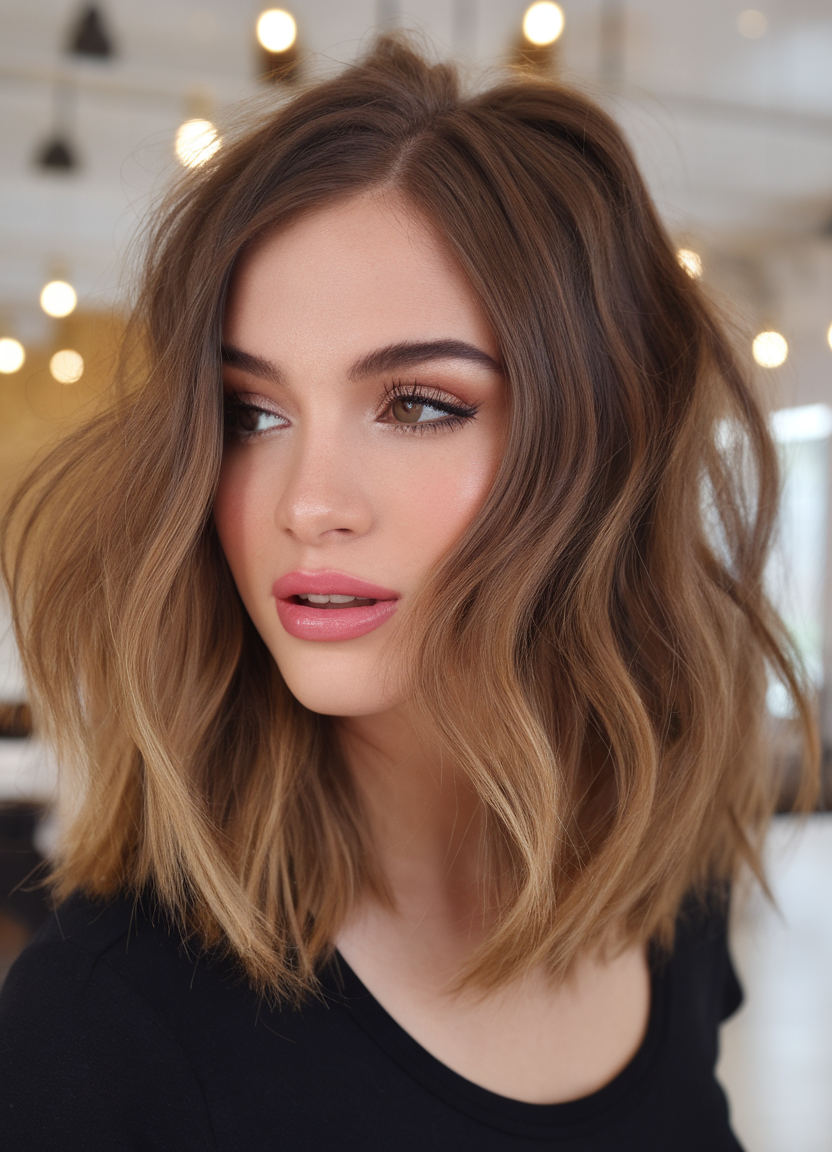 This soft balayage blends light brown tones into the natural brunette base for a subtle yet polished look. The soft waves add volume and movement, making this a versatile choice for spring hair color trends 2025. It’s a great style for those seeking a balance of sophistication and simplicity.