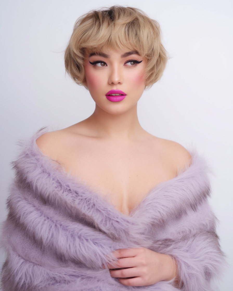 This feminino pixie bob takes inspiration from the 60s, featuring rounded layers that frame the face beautifully. The soft blonde shade complements the gentle curves of the haircut, making it perfect for thick hair. The subtle, bouncy texture adds volume, creating a playful yet sophisticated effect. A great choice for women looking for a fresh take on retro styles.