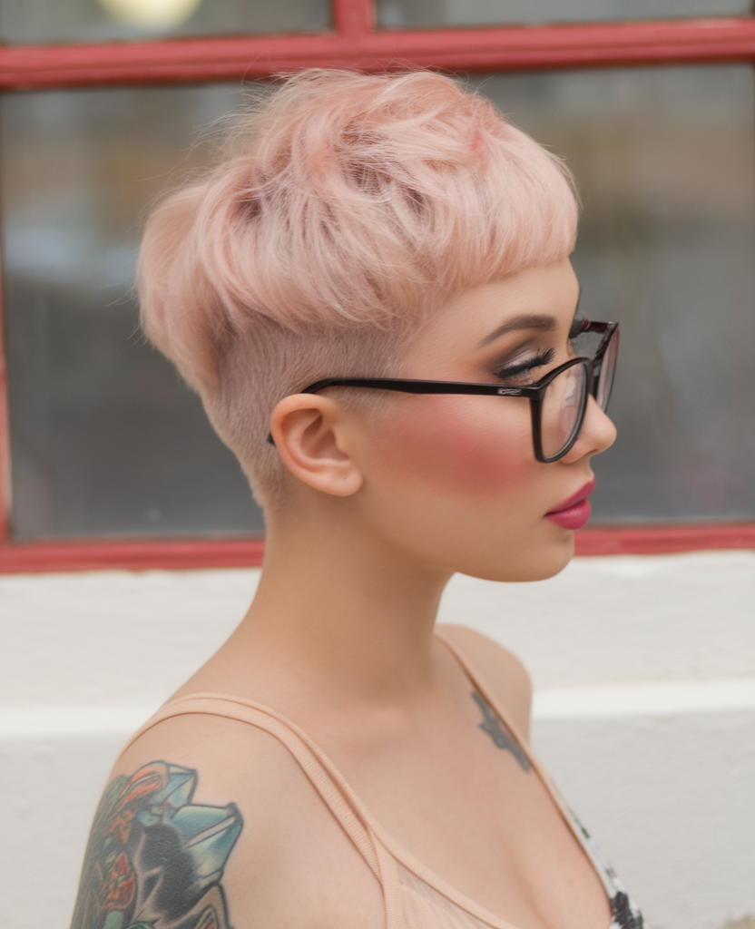 For those who love a grunge aesthetic, this ultra short pixie with an undercut is a bold statement. The soft pink hue brings a playful, trendy touch, complementing the edgy contrast of the shaved sides. The choppy fringe adds texture, making it ideal for curly hair or feminino cacheado styles looking for an artistic upgrade. This look embodies spring pixie haircut 2025 energy with confidence and attitude.
