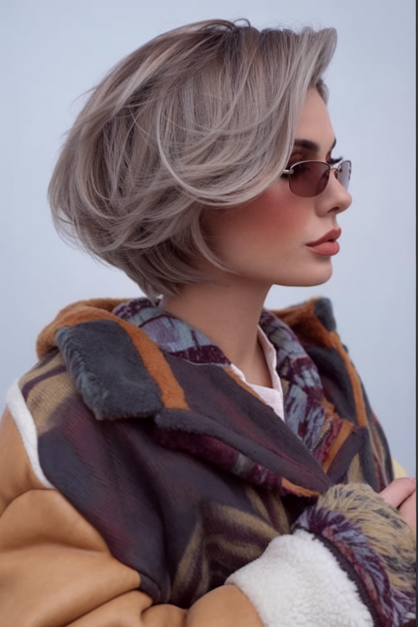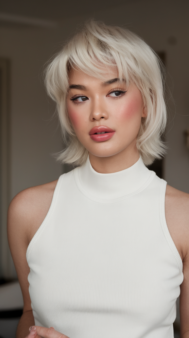 This ash blonde bob combines soft texture with voluminous layers, offering a lightweight and airy feel. The cut is perfect for round faces, enhancing facial features with its structured yet playful silhouette. A sophisticated pick for spring short haircuts ideas 2025, this style blends modernity with effortless charm.