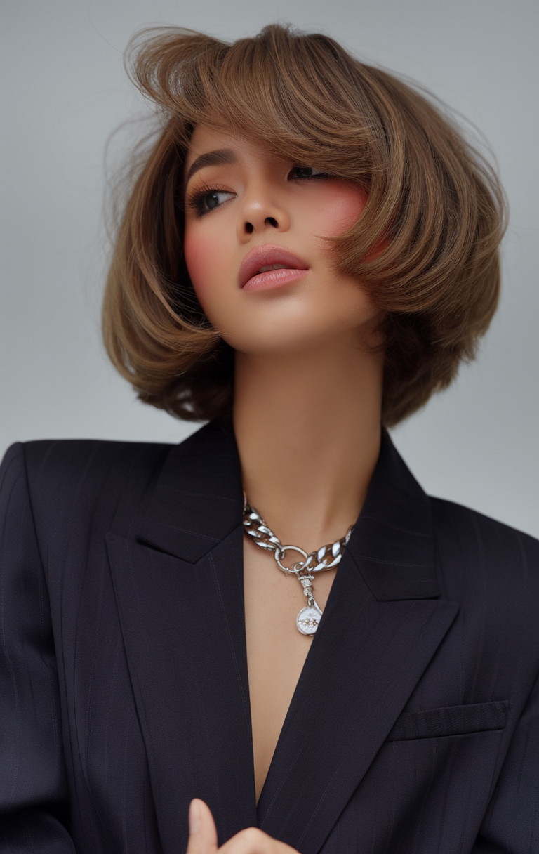#3 Voluminous Bob with Curtain Bangs
