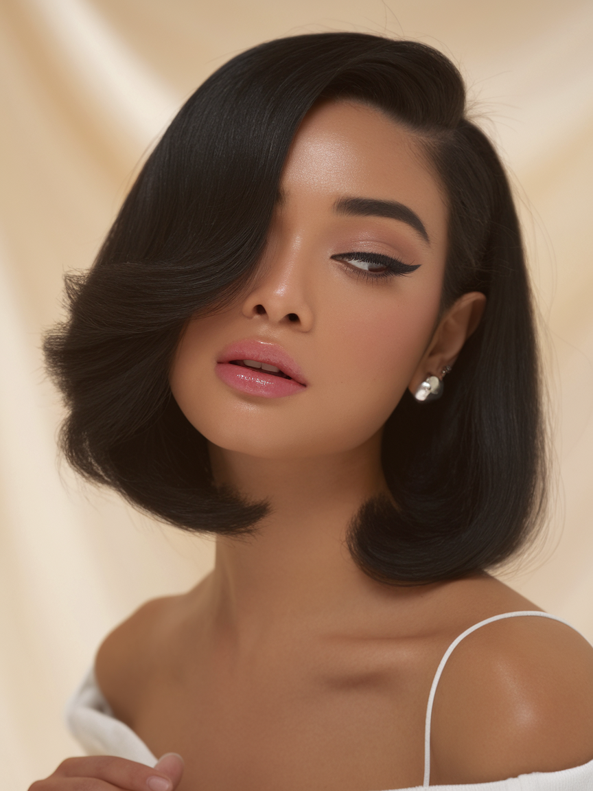 #21 Sleek Black Bob with Side Sweep