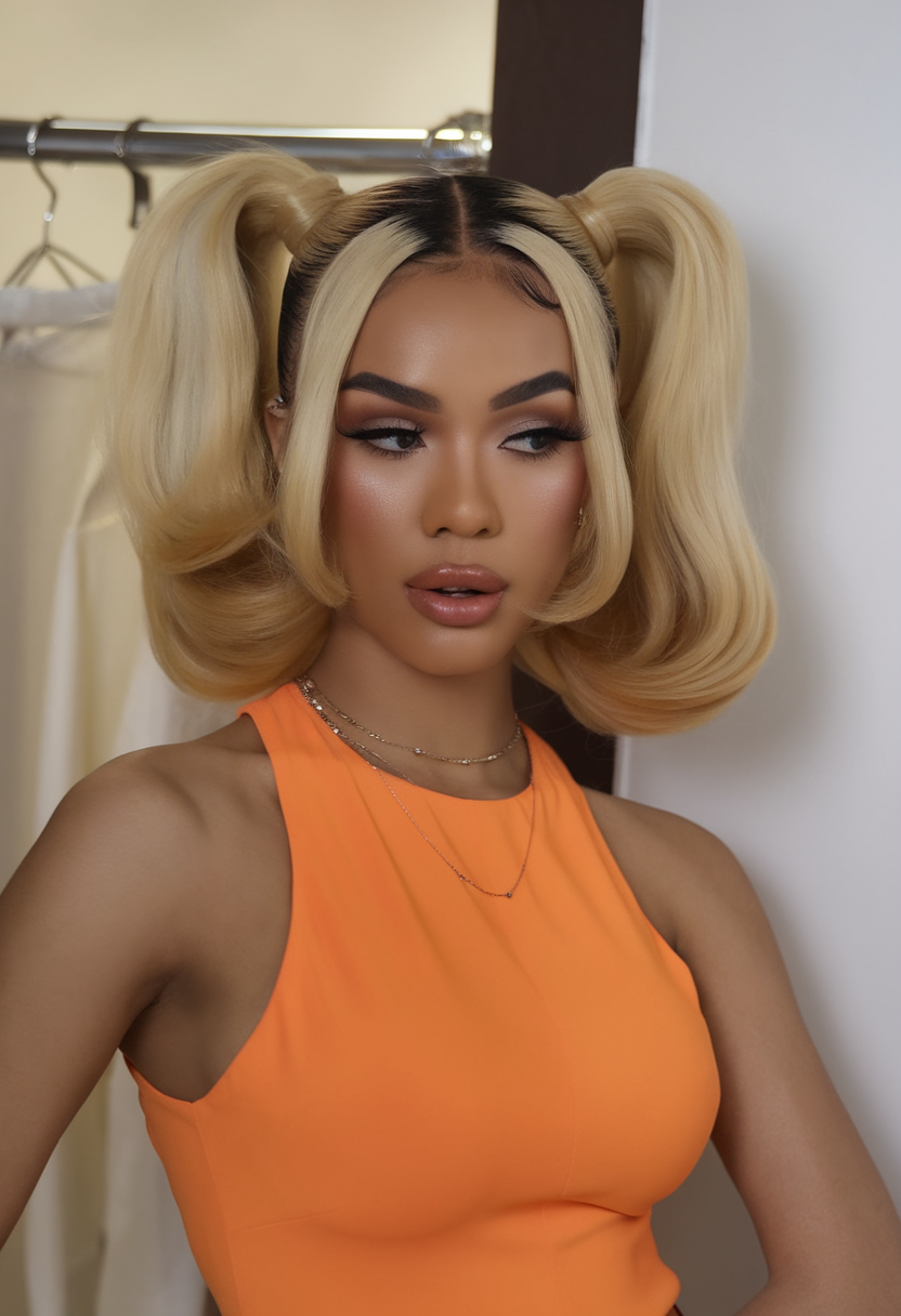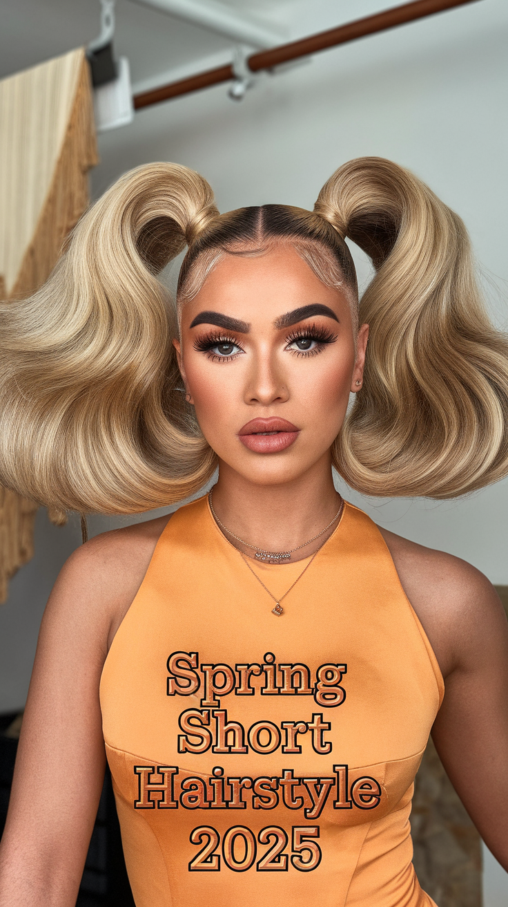This Y2K-inspired hairstyle brings back voluminous, curled pigtails with a modern twist. The dramatic flipped ends and bright blonde shade make it a bold statement for black women who love playful, cute styles. Perfect for those embracing the women ideas school trend with a glamorous edge.
