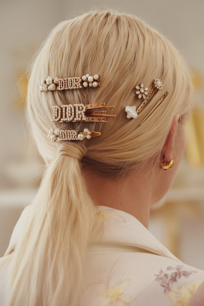 #10 Sleek Blonde Bob with Metallic Hair Clips
