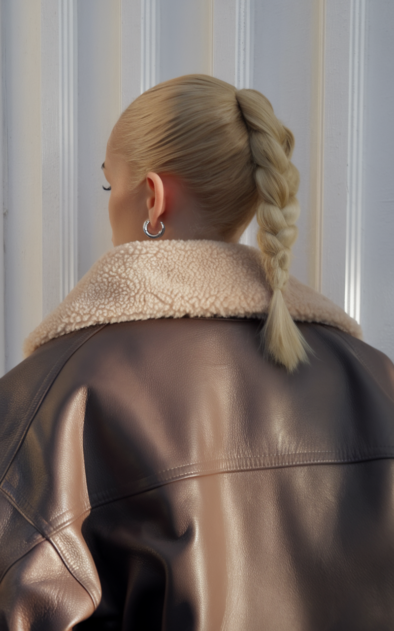 This polished women straight hair ponytail is styled into a sleek, structured braid. The smooth roots enhance the sharpness, making it ideal for women ideas for wedding or chic everyday wear. A minimal yet striking hairstyle that exudes confidence.