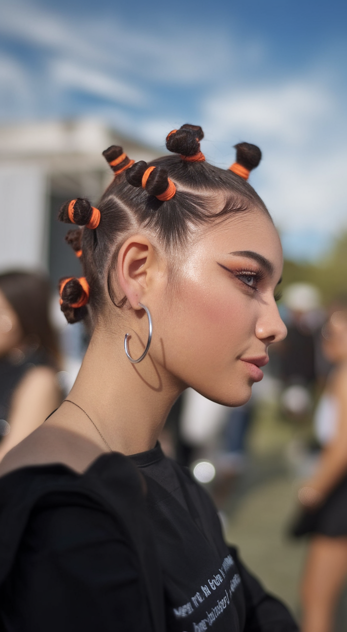#22 Edgy Space Buns with Face-Framing Tendrils