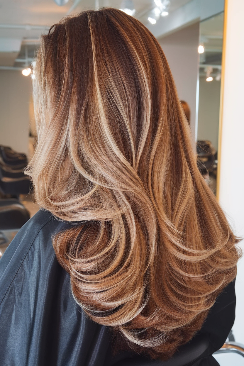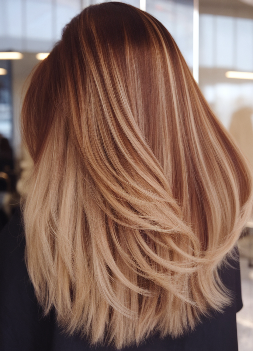 #23 Layered Copper and Blonde Balayage Medium Cut