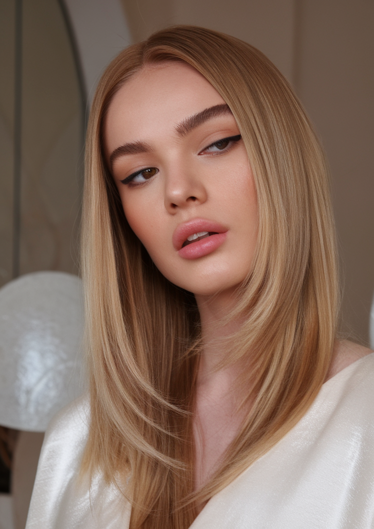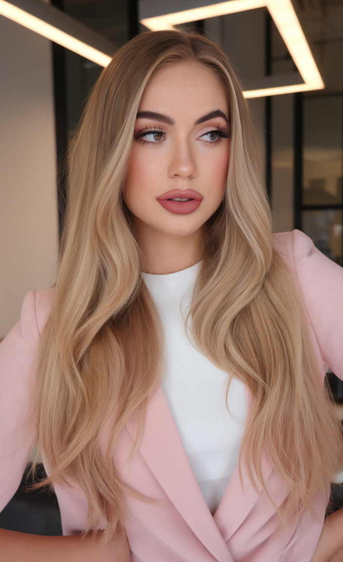 2025’s Icy Champagne Blonde has a glassy smoothness to it that pops with the overdue elegance a precision cut offers on long straight hair. The color has a soft frosty champagne base that has stunning light reflection. For those who prefer bone structure over texture as well as being on the summer hair for blondes, this finish adds polished sophistication.